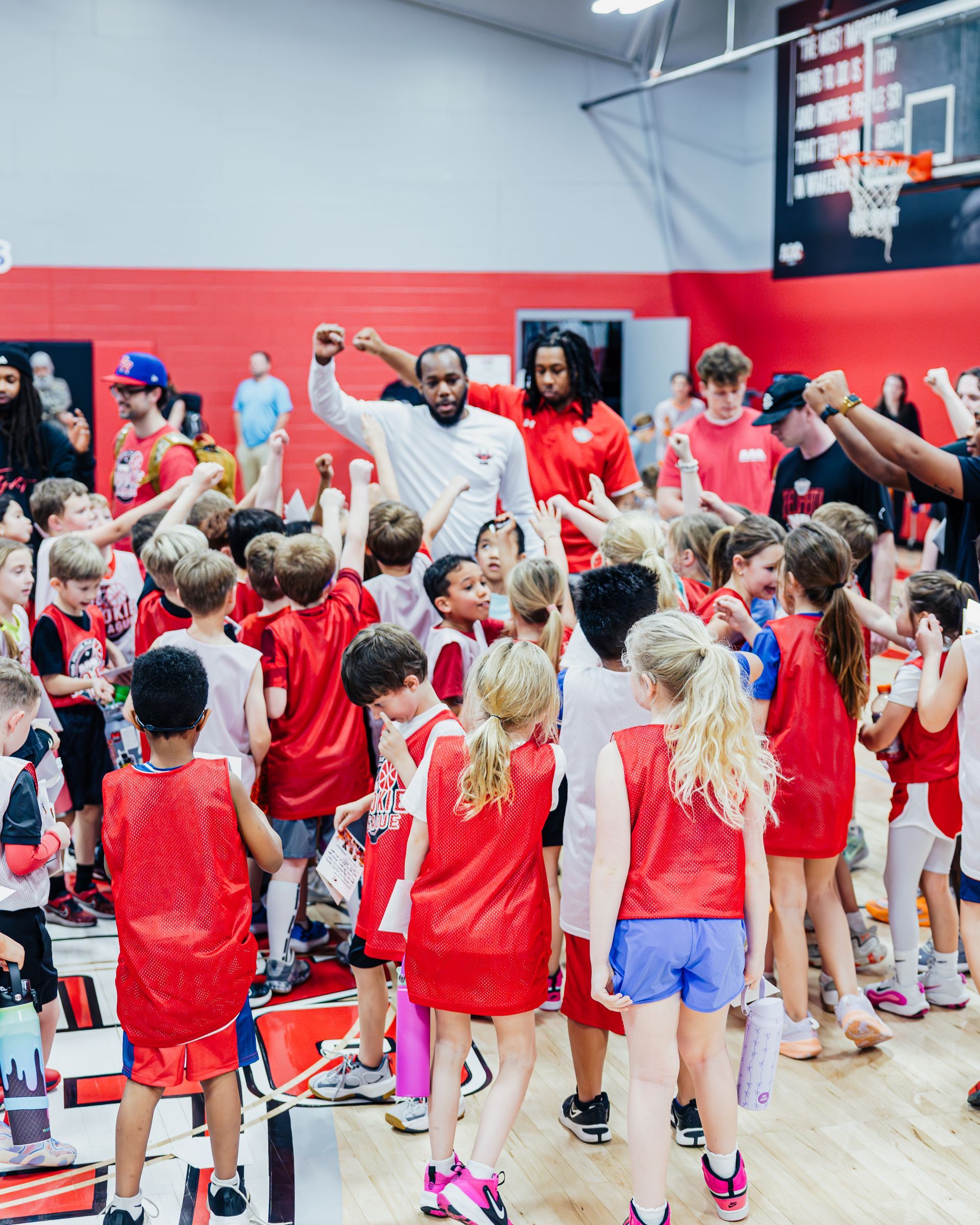 Foundational basketball skill work with certified AAO Trainers on dribbling, passing and shooting.